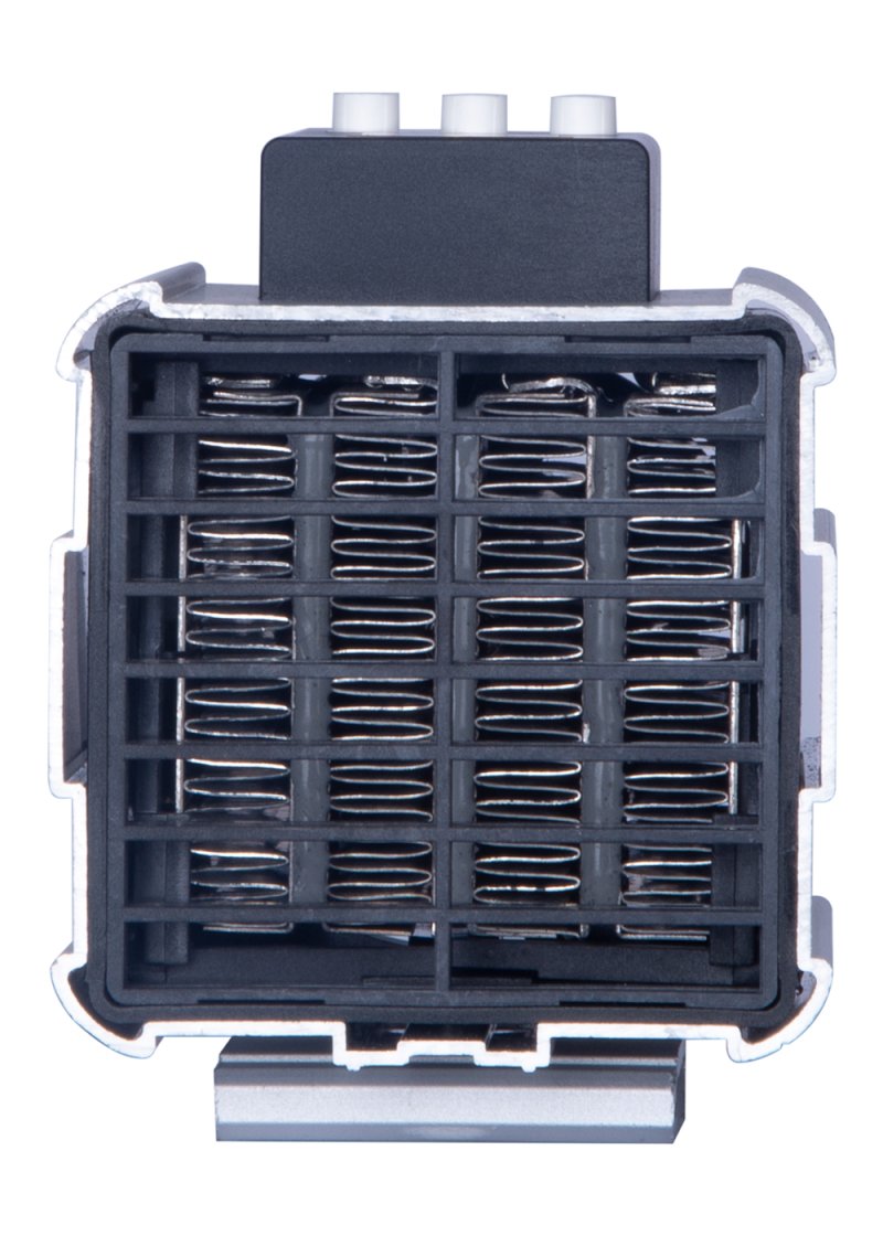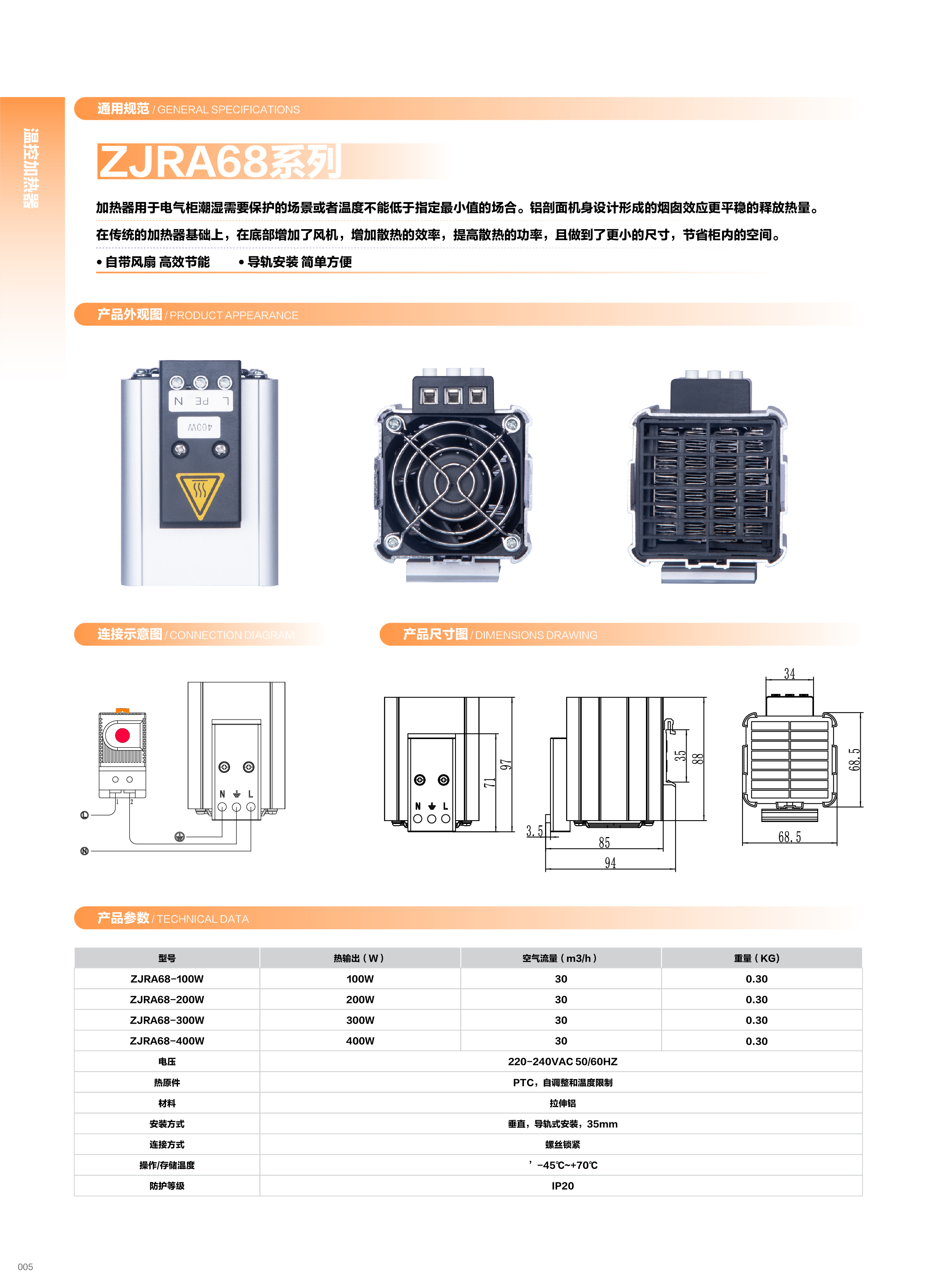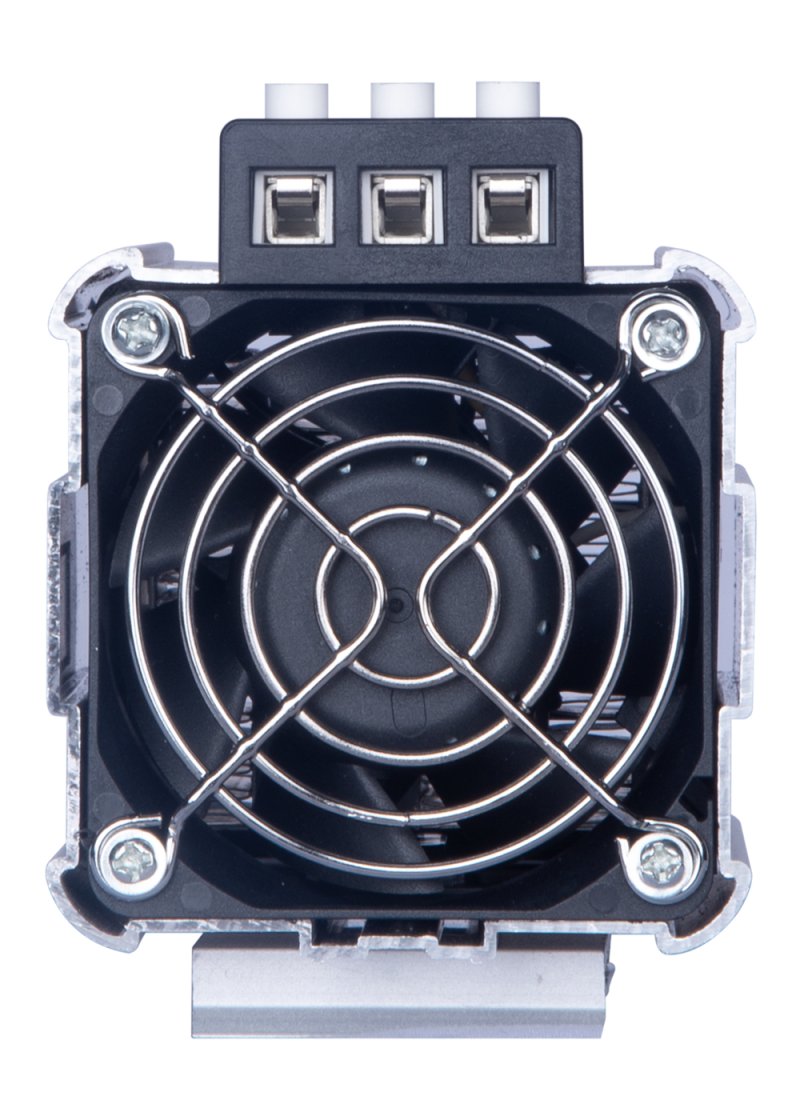 在传统的加热器基础上,在底部增加了风机,增加散热的效率,提高散热的功率,且做到了更小的尺寸,节省柜内的空间。