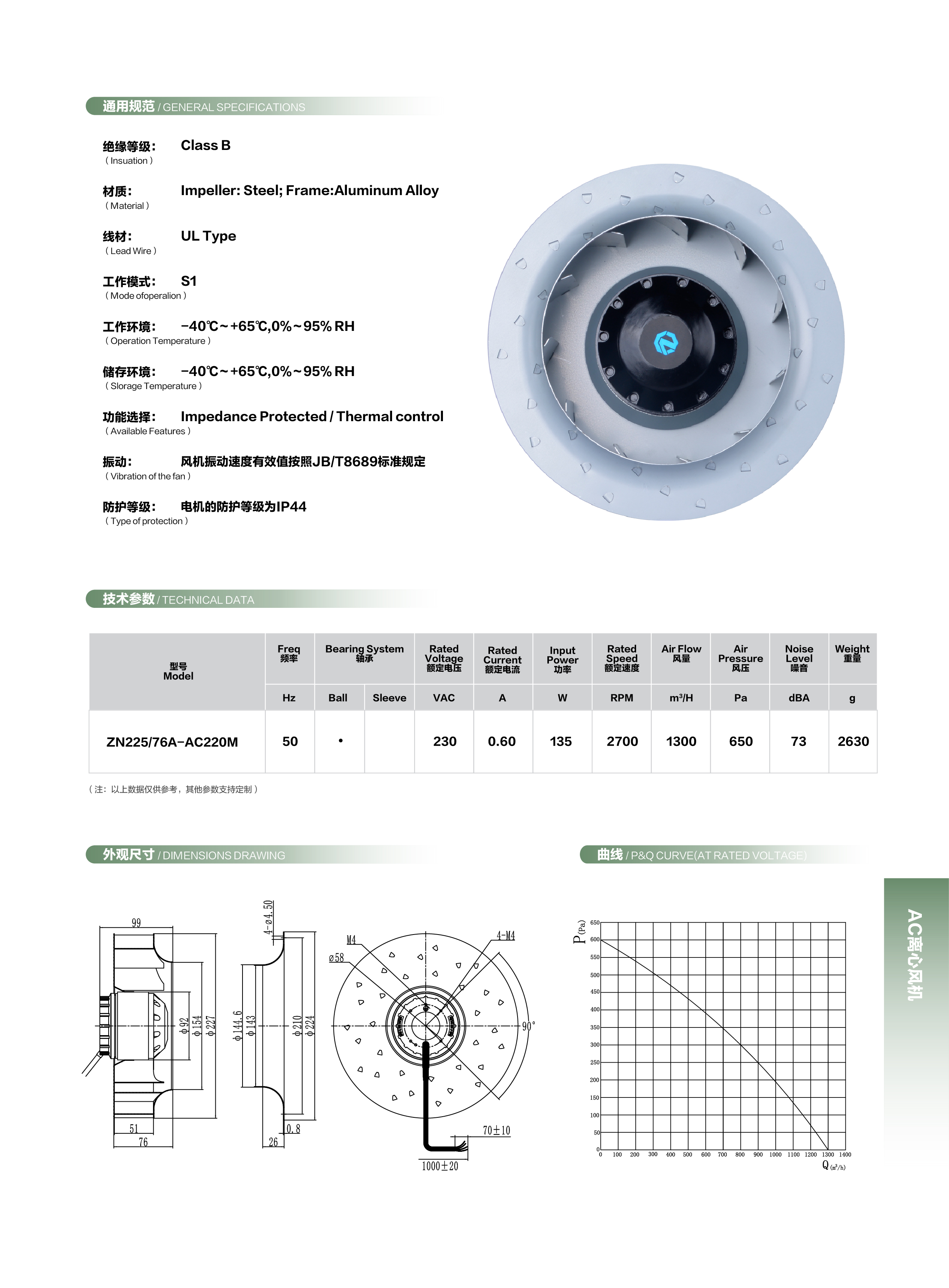 该产品为AC后倾离心风机,具有结构紧凑,运行可靠,节能高效,运行噪音低及安装方便等主要特点;经多年自主研发,目前形成了高效低噪的特色产品。