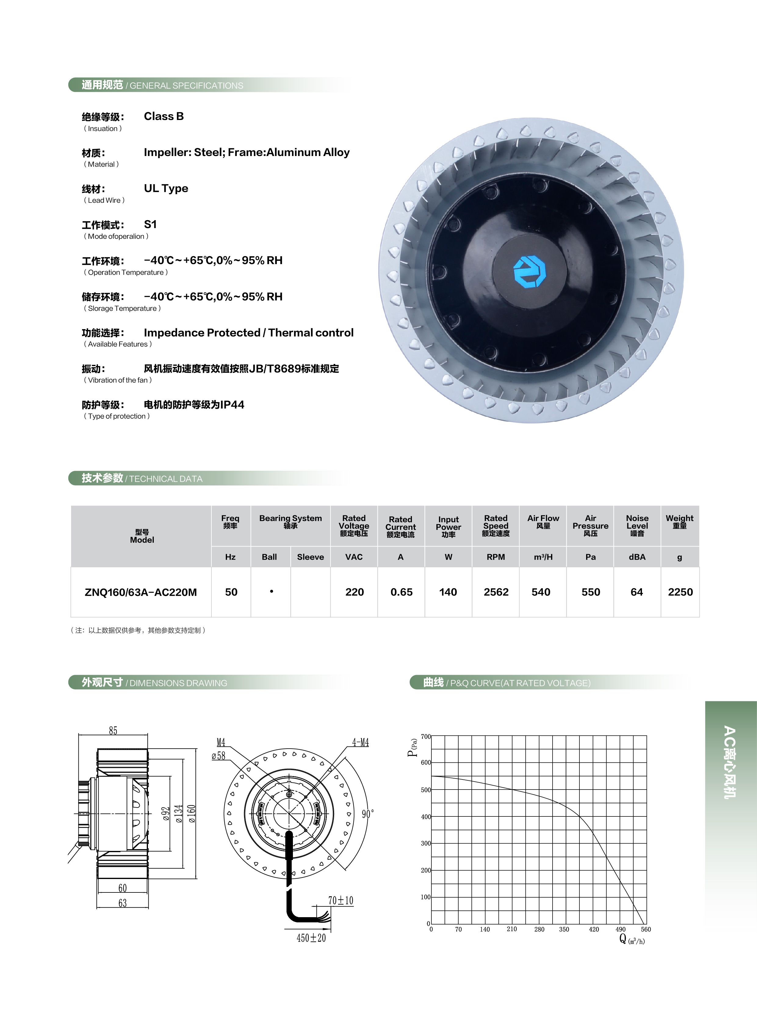 该产品为AC前倾离心风机,具有结构紧凑,运行可靠,节能高效,运行噪音低及安装方便等主要特点;经多年自主研发,目前形成了高效低噪的特色产品。