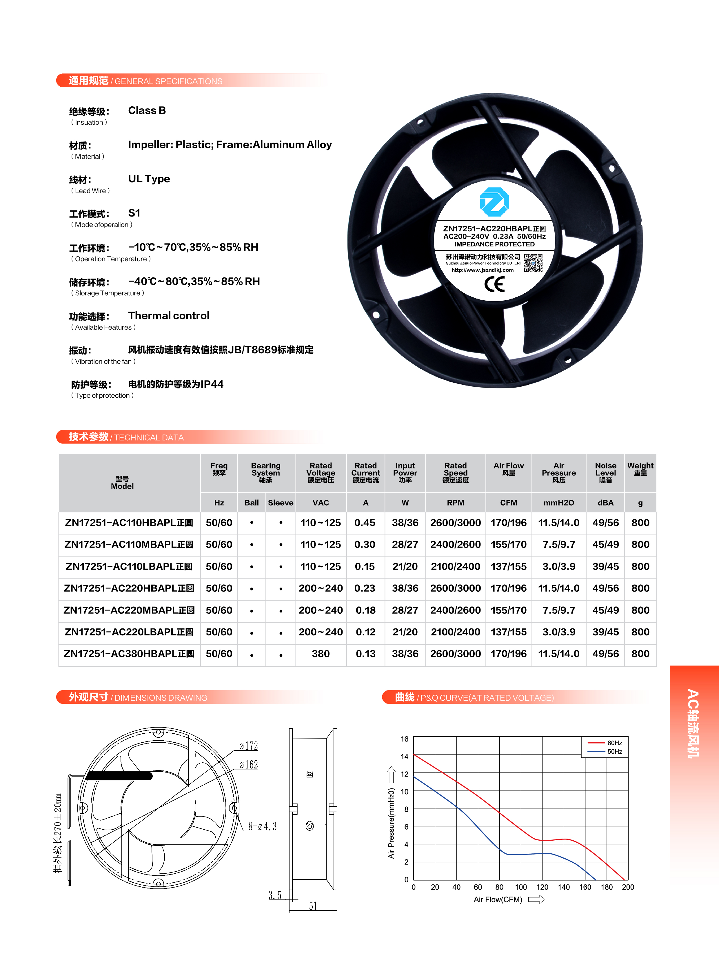 该产品AC轴流风机,通过欧盟ErP能效要求,风机的控制自如,能灵活地满足客户的需求;可以提供多种控制方案和保护功能,具有结构紧凑,运行可靠,节能高效,运行噪音低,设计寿命长及安装方便等主要特点。