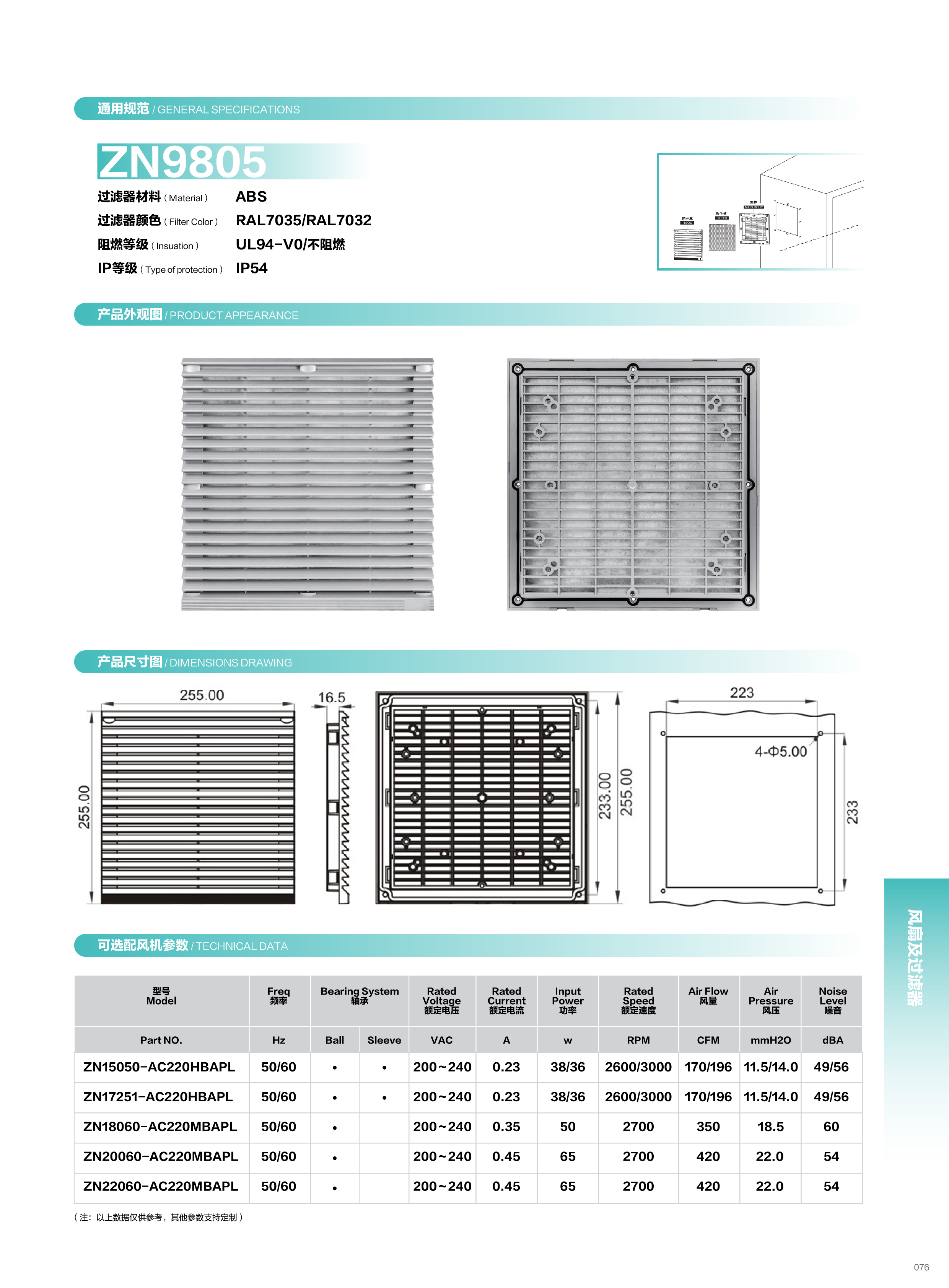 该产品为风扇过滤器,可帮助机柜通风散热,并有效隔绝水,灰尘等进入机柜,确保机柜内的元器件运转正常 。卡扣安装,方便快捷,外观多元化选择,结构合理的外拉式设计,方便更换过滤垫;过滤器与风机组合方便,多样选择。
