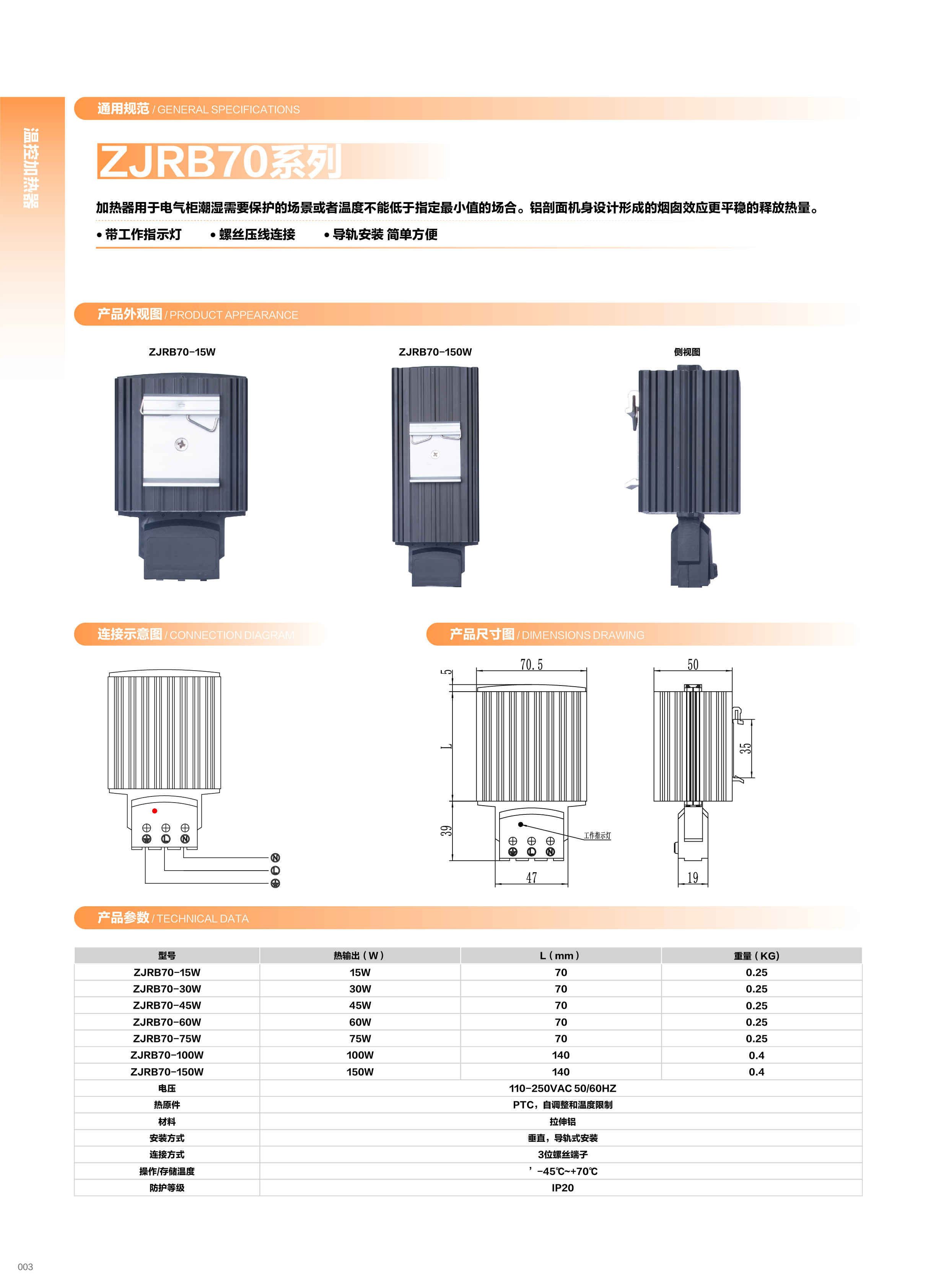 加热器用于电气柜潮湿需要保护的场景或者温度不能低于指定最小值的场合。铝剖面机身设计形成的烟囱效应更平稳的释放热量。