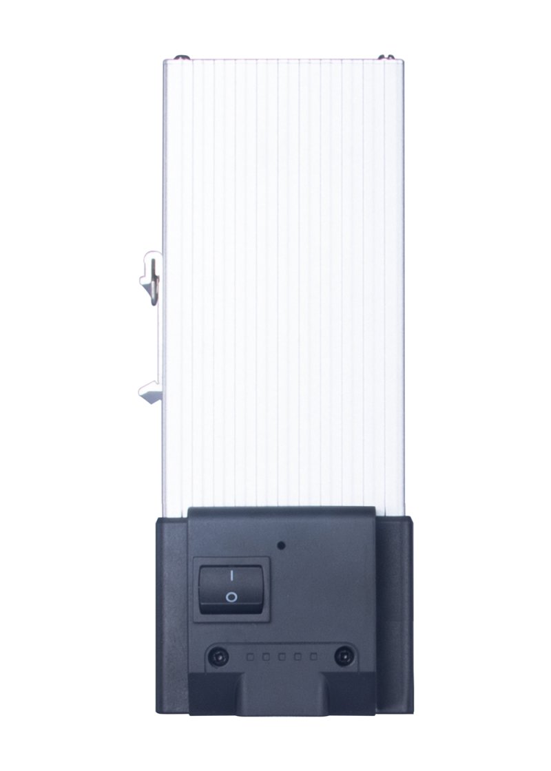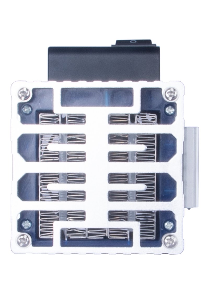 在传统的加热器基础上,在底部增加了风机,增加散热的效率,提高散热的功率,且做到了更小的尺寸,节省柜内的空间。